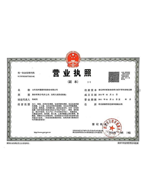 山東龍興塑膜科技股份有限公司前身為山東壽光龍興農(nóng)膜有限公司組建于2011年,2018年10月重組,目前是壽光市國(guó)有控股公司、高新技術(shù)企業(yè),是專(zhuān)業(yè)生產(chǎn)高檔農(nóng)用薄膜、工業(yè)用薄膜的企業(yè),是一家以產(chǎn)品制造為主,集科研開(kāi)發(fā)、產(chǎn)品設(shè)計(jì)、技術(shù)服務(wù)于一體的綜合性企業(yè)。公司現(xiàn)有職工228人,各類(lèi)工程技術(shù)人員97人,管理人員20余人,注冊(cè)資金14234.2096萬(wàn)元,總資產(chǎn)102314萬(wàn)元,目前是壽光市國(guó)有控股公司、高新技術(shù)企業(yè)。公司是中國(guó)塑料加工工業(yè)協(xié)會(huì)農(nóng)膜專(zhuān)業(yè)委員會(huì)會(huì)員單位,中國(guó)復(fù)合材料工業(yè)協(xié)會(huì)會(huì)員單位,中國(guó)塑料加工工業(yè)協(xié)會(huì)雙向拉伸聚酯薄膜專(zhuān)業(yè)委員會(huì)會(huì)員單位...